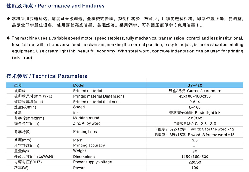 SY-420紙盒印字機